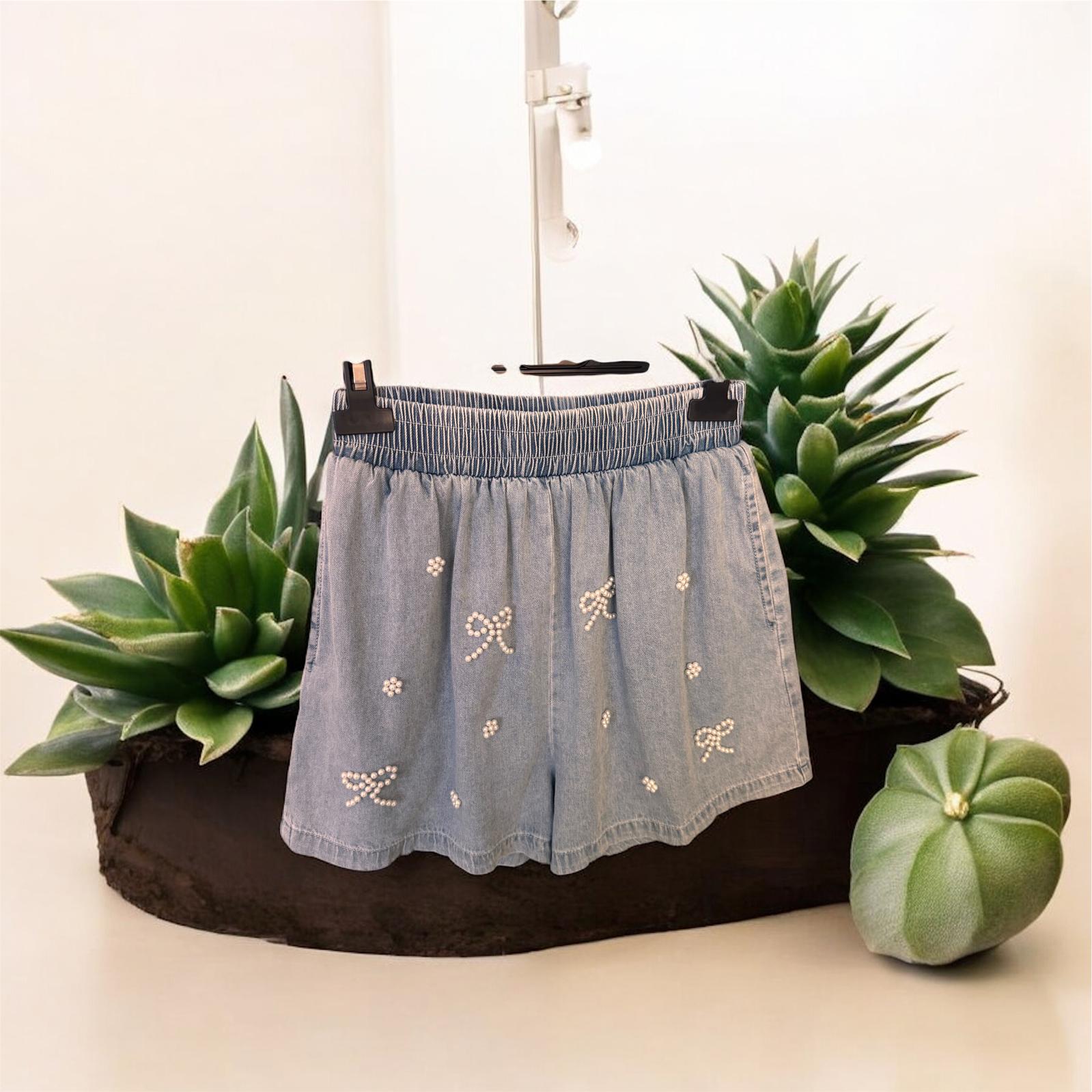 SHORT VAQUERO BLANDO CON DETALLES PERLA