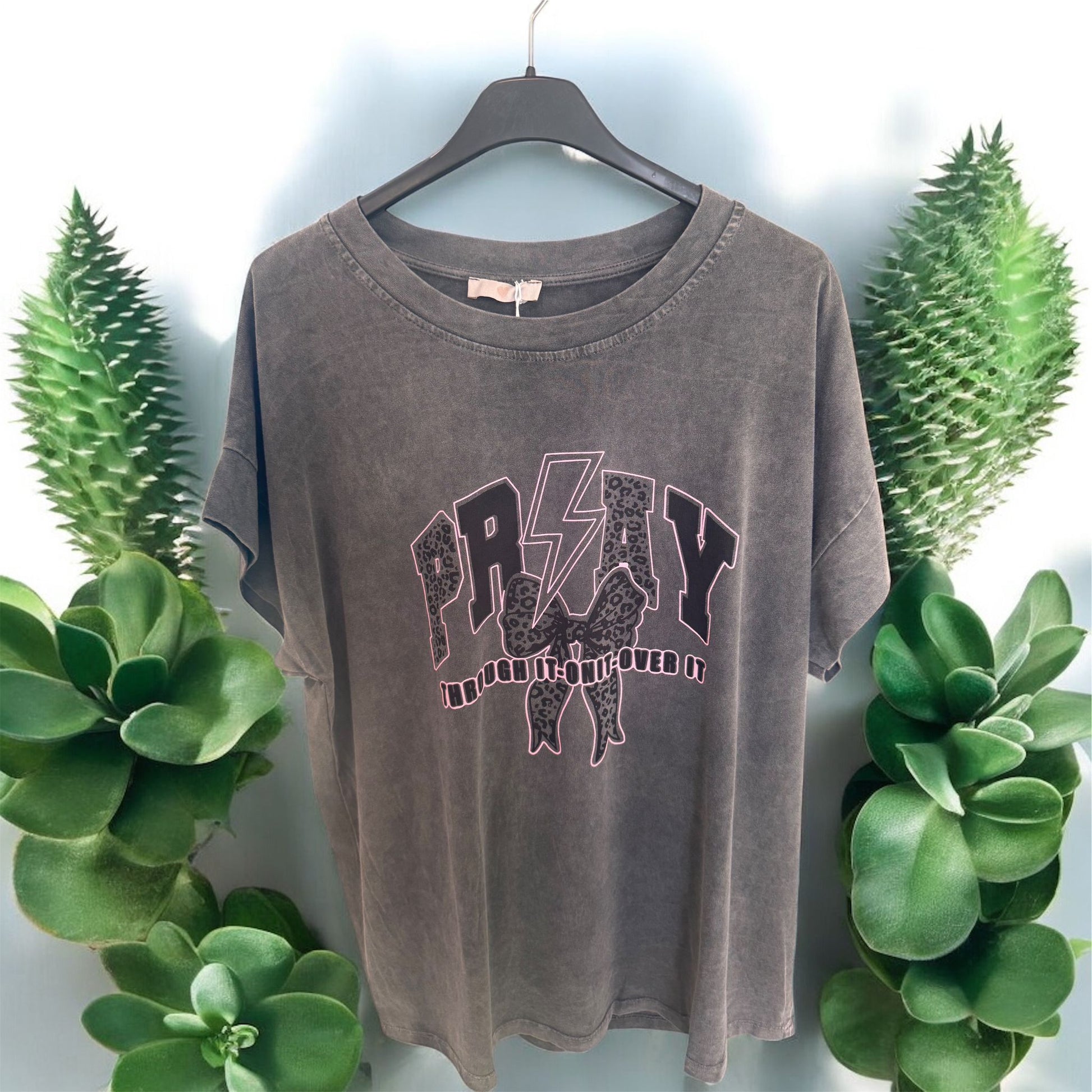 CAMISETA MANGA CORTA EFECTO LAVADO PRAY (reza) TALLA UNICA IDEAL S M L Y XL