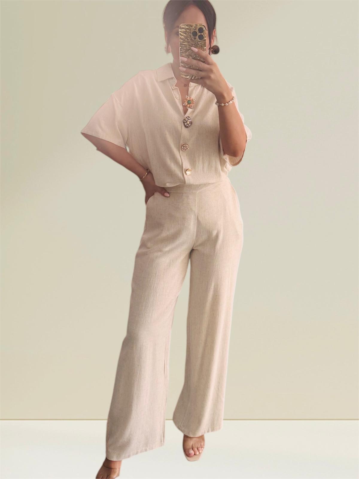 TALLA S-M (36-38) CONJUNTO DE LINO BEIGE